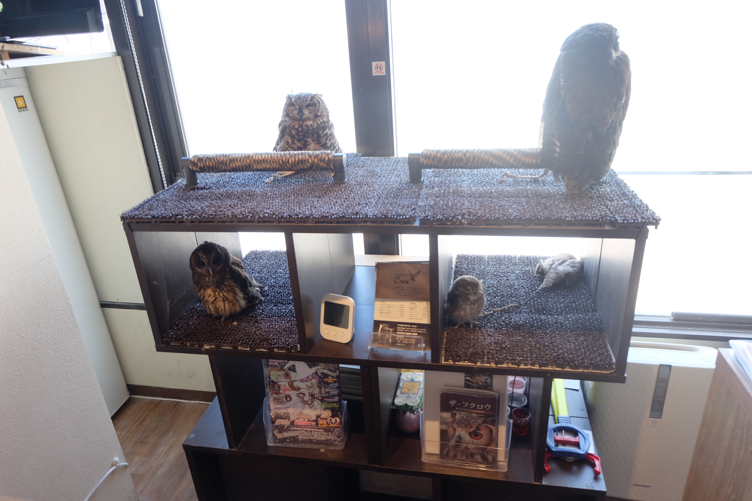 ともかく、ふくろうカフェに行くまではとてもワクワクしていました。そして実際カフェでみたものは僕が期待していたものでした…彼かがつながれているという事実を除いては…。