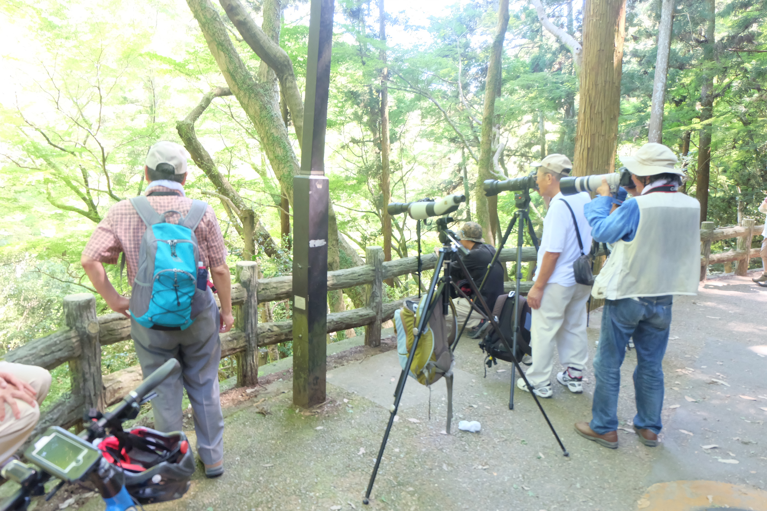 山の中腹あたりで、何やら人だかりができているのを見つけました。何やら望遠鏡で何かをみているようです。