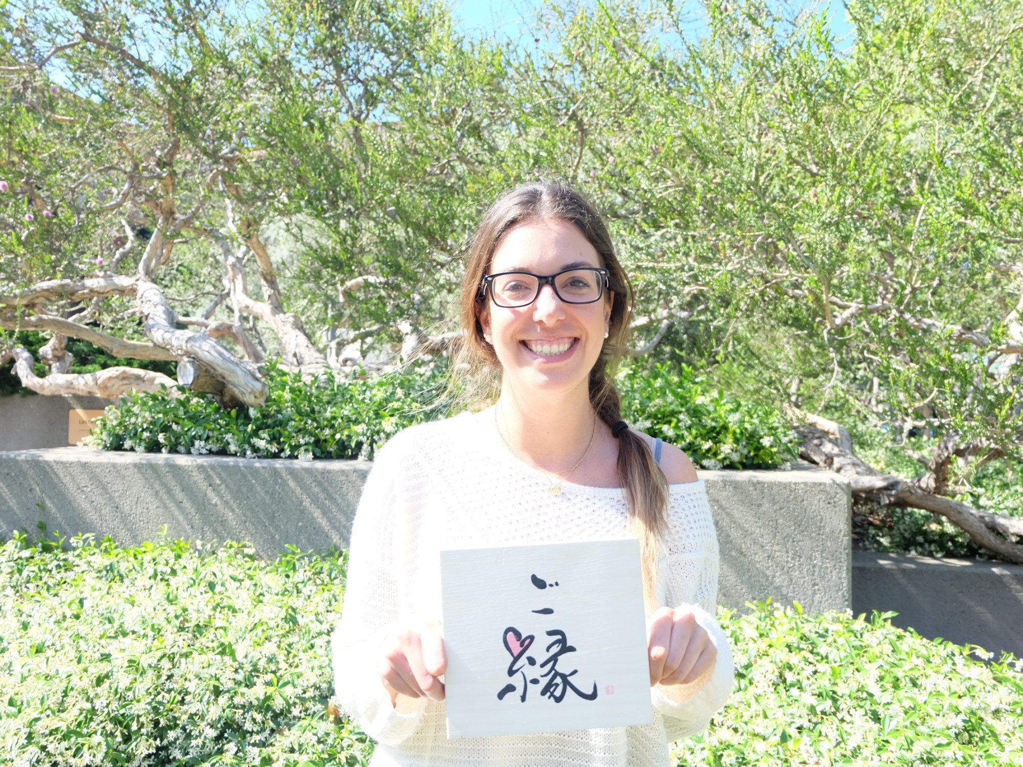 What Alexa is holding is a symbol called “go-en(ご縁)”, which means ‘fate’, ’destiny’ and ’special tie.’